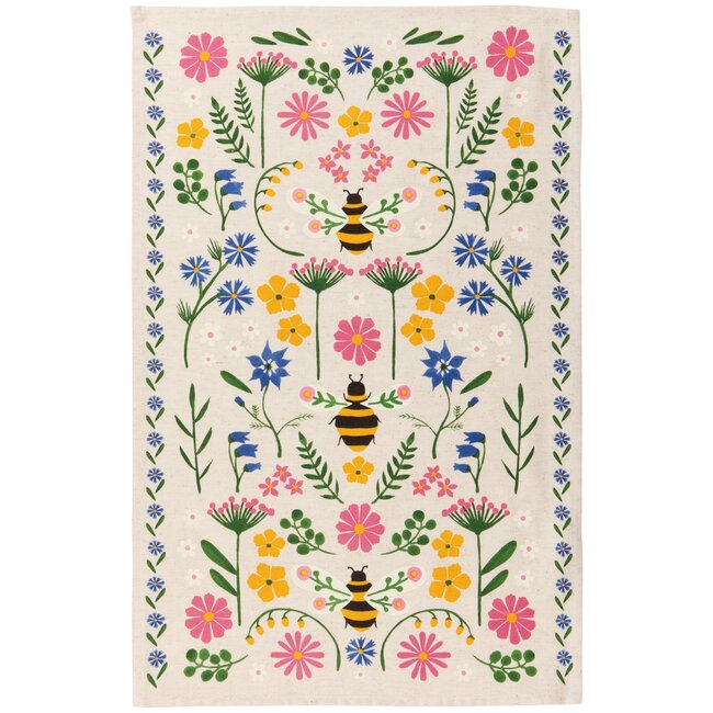 Add life and character to your kitchen with our fun and colorful printed cotton Bee Garden dishtowel. A perfect combination of form and function, this towel will make washing up less of a chore. Our Bee Garden collection pays tribute to nature's essential helpers. With a folk art-inspired design featuring bees buzzing among the wildflowers, this cheerful dishtowel brings garden-fresh delight to your space. Symmetry highlights the natural harmony of pollinators and plants.