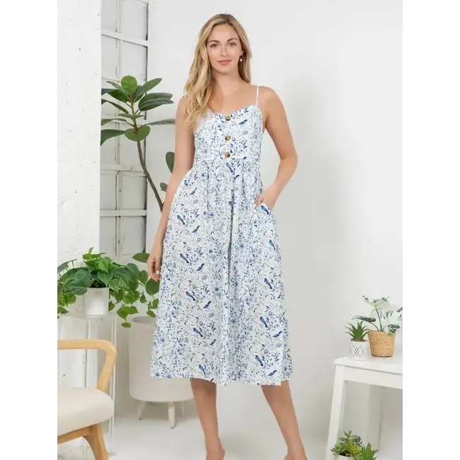 Celebrate nature with our Bird Garden Print Cami Dress, showcasing charming avian and botanical details. The relaxed cami design provides comfort without compromising style, perfect for warm days and casual occasions. Pair it with your favorite accessories for a look that feels both grounded and whimsical.