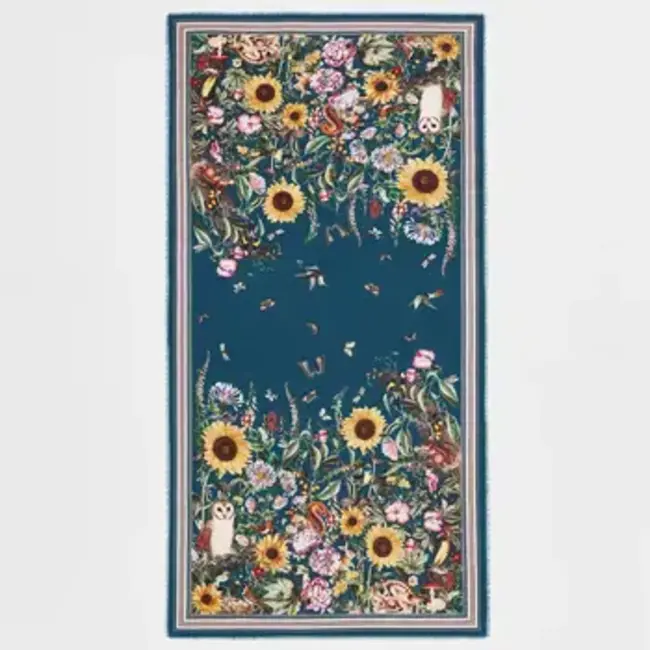 Wander through the enchanted Fable forests with our Green Botanical Long Scarf. Teal-hued and adorned with a woodland print of delicate blooms and charming forest creatures, this silky-soft scarf brings elegance to every look. Wear it around your neck, tie it in your hair, or tie it to your bag.