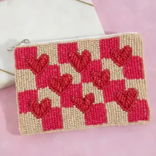 The "Checkered Heart" seed beaded coin purse. Zipper closure.