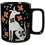 A new mug shape features a unique rectangular handle. This design invites you to roam along the country road with a playful pup and a palette of rich rust, serene blue, and striking black conveying an unassuming beauty.