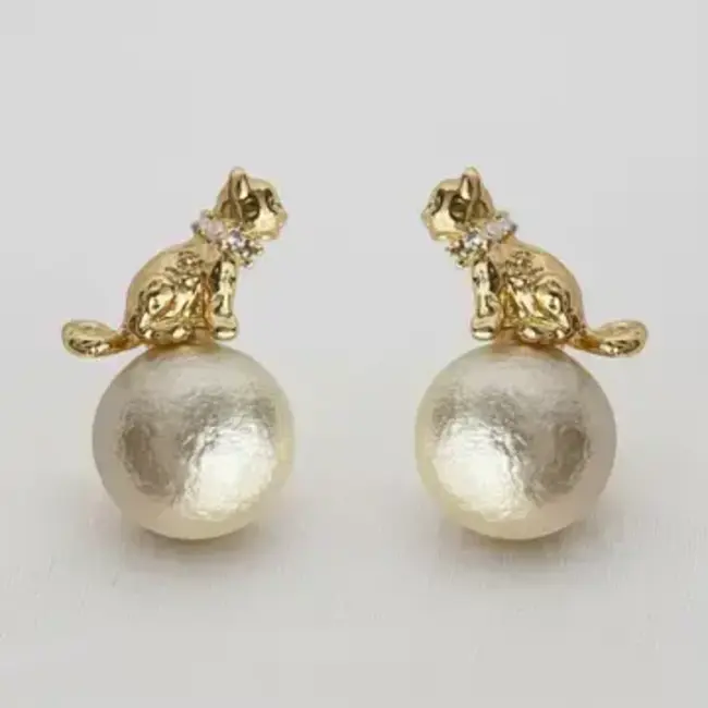 Egyptian Cat Pearl Stud Earrings
