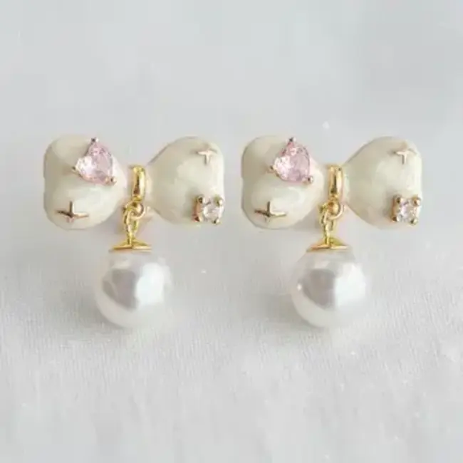 Features: * Dainty bowknot design * Sparkling cubic zirconia accents * Elegant enamel finish * Lightweight and comfortable for all-day wear