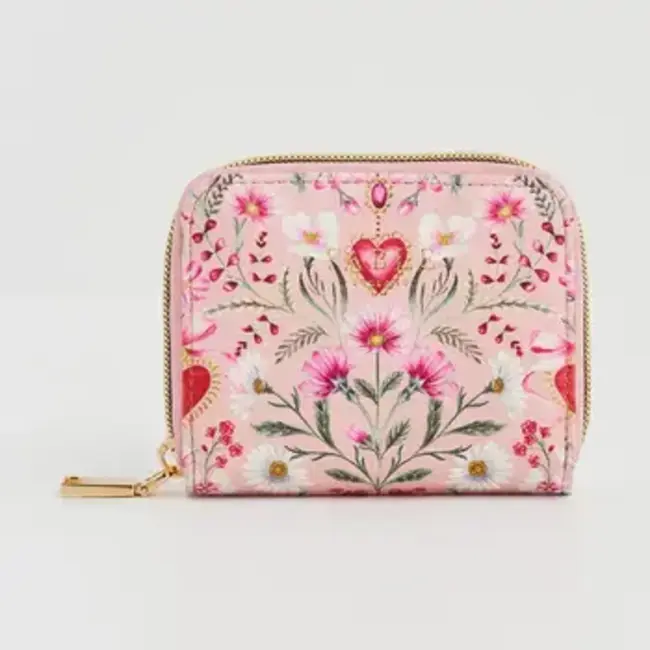 Carry a whisper of romance with our Penelope Pink Floral Heart Small Purse. Adorned with joyful blooms and tender heart detailing, this pastel pink treasure brings a soft shimmer of gold-tone charm to your everyday moments. Inside, thoughtfully arranged pockets and card slots keep your little essentials neatly tucked away.