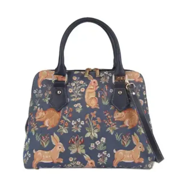 PRODUCT DESCRIPTION: Proven to be one of our most popular tapestry bags with shoulder strap styles and one of the best shoulder bags for women. This elegantly designed classic top handled handbag is one that can serve as a fantastic choice for your everyday needs * Brilliant choice for small travel, evening walks or overnight * Features a modest area for storing your handbag essentials, with an open sleeve and zip up pocket also featured on the inside * Fully lined with a patterned nylon * Faux leather handle and detachable shoulder straps included * Has the option to be worn as a handbag or converted into a cross body or shoulder style bag * Fitted with a full length zip fastener * Solid base with 4 studded feet * Size: 12.5 x 9 x 5 inches - Weight: 1 lb See All Convertible/Top Handle Purse Bag Designs