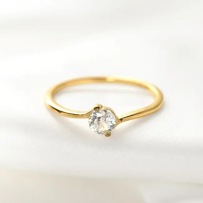 Gold Cubic Zirconia Solitaire Ring - Waterproof