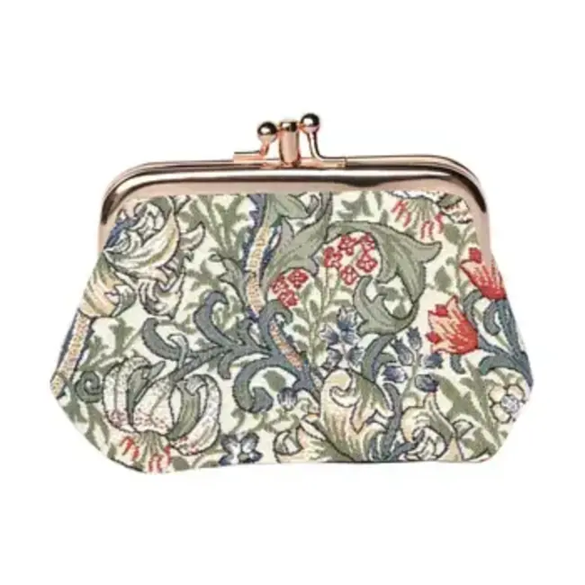PRODUCT DESCRIPTION: A fantastic tapestry pocket wallet for keeping tickets, cards or all of your change together * This cloth coin purse contains a metal frame with double clasp closure * A pair of compartments for storing goods * Lined fully with a patterned nylon