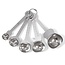 Set of 5 stainless steel measuring spoons. Use for measuring dry or liquid ingredients. Attaches with an O-ring and easily nests for storage.