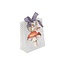 Package a gift perfectly with this beautiful ribbon tied gift bag featuring our lovely little mouse design on a gorgeous light blue colored background with a purple ribbon. This bag is recyclable once the ribbon and rope handle have been removed. Measures 7 x 6 x 3 inches and is ideal for small gifts.