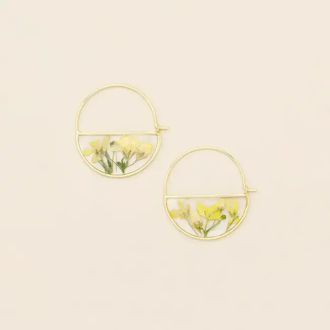Pressed Flower Hoop Earring - Yellow Baby's Breath/Gold
