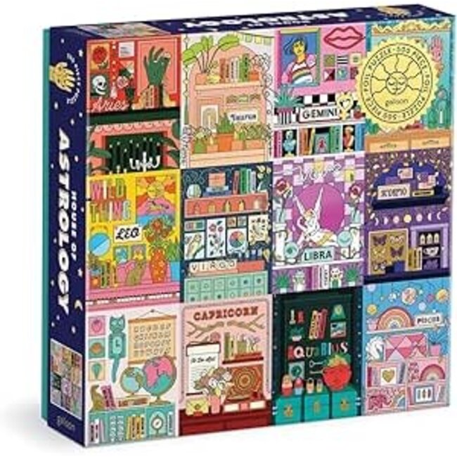 The House of Astrology 500 Piece Foil Puzzle from Galison is comprised of interior vignettes illustrated for each of the 12 astrological signs and includes shiny gold foil accents. Galison puzzles are packaged in matte-finish sturdy boxes, perfect for gifting, reuse, and storage.