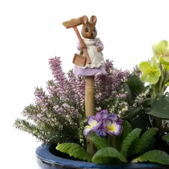 Our award-winning Colour Hunca MuncaCane Companion has been custom designed and manufactured by Jardinopia Ltd. It is made from a durable poly resin and crushed stone based material. It is frost proof, UV resistant and hand-painted using lead-free products. You can leave it outside all year around and the paintwork will not fade or flake in extreme temperatures and the product will not be adversely affected by frost.Colour Hunca Munca Cane Companion is an ideal gift for garden and animal lovers alike. Each Cane Companion is beautifully gift packaged using 100% recycled (and onward recyclable) craft card materials.