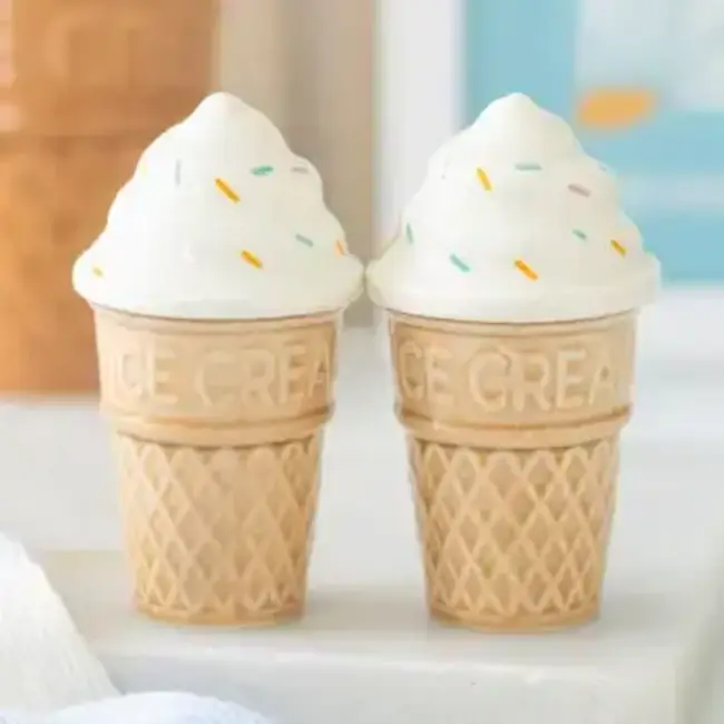 Add a scoop of whimsy to the table with this set of ceramic salt and pepper shakers, crafted in realistic ice cream cone shapes. Ideal for summer gatherings, picnics, or anyone with a sweet tooth and a love for playful kitchen decor.