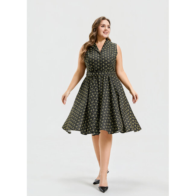 "One of our most-loved prints returns in the timeless Jani silhouette. A classic black dress reimagined with a bee-inspired charm, perfect for adding a touch of sweetness to your wardrobe."