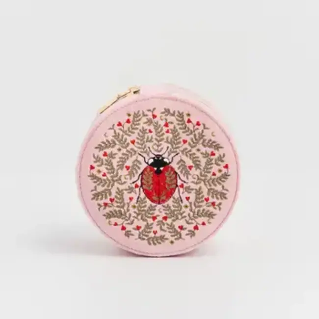 Ladybug Pink Velvet Embroidered Circle Jewellery Box