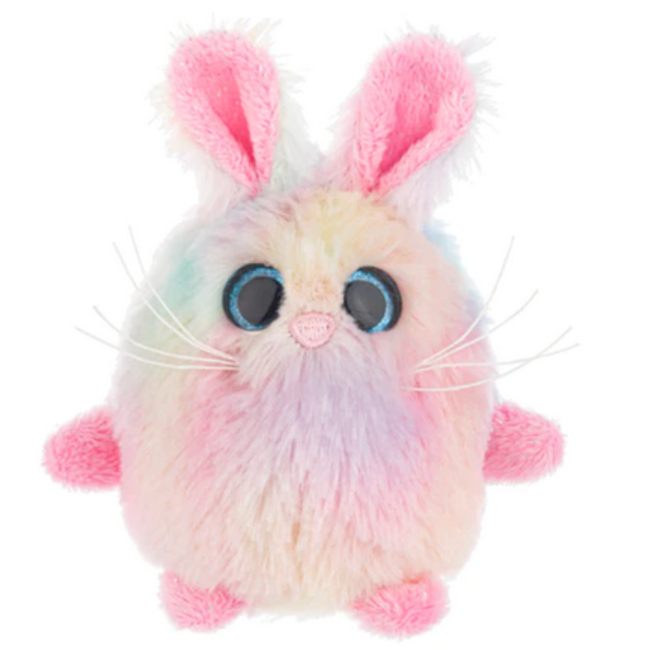 A round, puffy, and soft plush bunny.