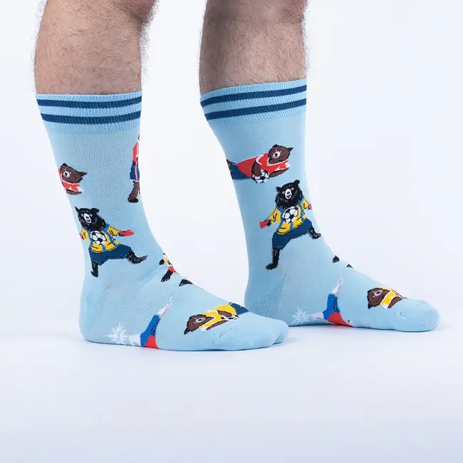 Soccer-loving bears suit up and show off their moves. These sporty socks are total goal-getters.