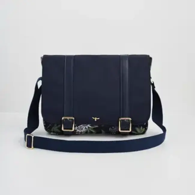 Passion Flower Navy Satchel