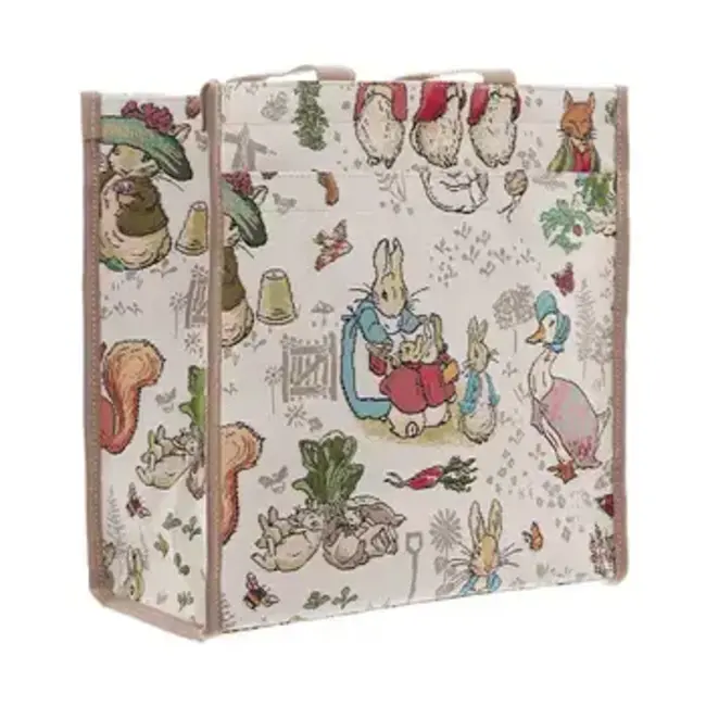 * Pair of full width pockets located on both sides of the shopper; one is fastened with a zip and the other with velcro for a stylish variation and easy access * Lined with a synthetic material on the inside and a zip pocket for belongings * Top of the bag is gusseted with the tapestry material and has zip fastening across the full width