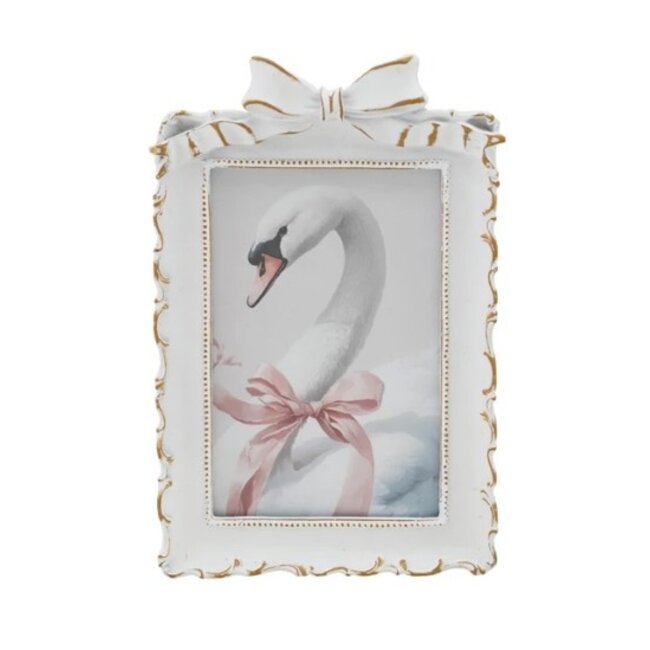 Plastic Photo Frame w/ Bow, Antique White & Gold Finish (Holds 4" x 6" Photo)