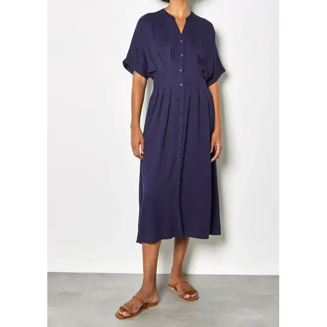 Pleated Waist Mini Shirt Dress in Navy