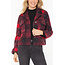 Short and sweet red buffalo check jacket will be your go to this fall! It has great texture, a notched collar, button down front, front button flap front pockets and adjustable button cuffs. Fit is true. Â