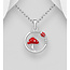 925 Sterling Silver Mushroom and Ladybug Necklace Decorated with Coloured Enamel and Cubic Zirconia Simulated Diamonds