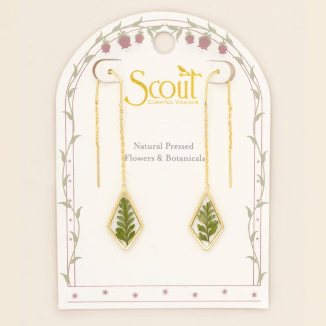 Pressed Flower Thread Earring - Green Bracken Fern/Gold