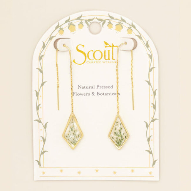 Pressed Flower Thread Earring - White Lace Flower/Gold