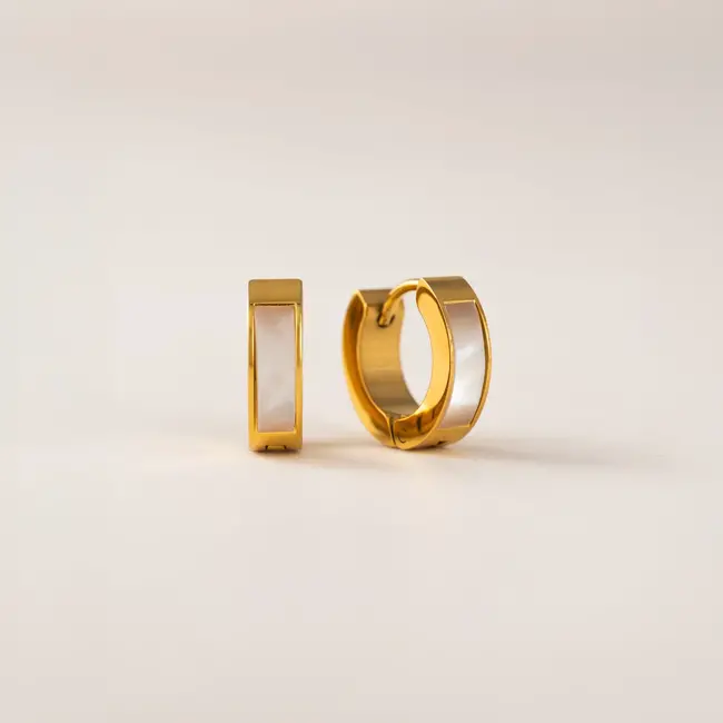Sleek, understated, and effortlessly polished. These huggie hoops blend gold and mother of pearl for a look that’s equal parts modern and timeless.