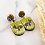 Sweet and whimsical, these darling earrings are the perfect spring accessory! Featuring a charming vintage deer illustration, rendered in muted lime green. Made from sustainably sourced North American hardwood and finished with soy-based, BPA/VOC free resin, these vibrant earrings will bring joy and brightness to any wardrobe. Surgical steel post earrings. Approximately 1.7 inches long.