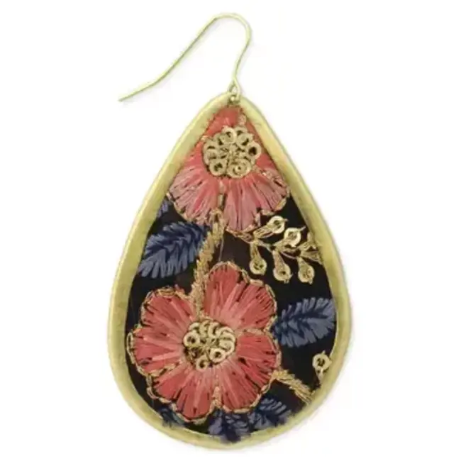 Enjoy the romantic feel of these black and pink floral embroidered earrings.