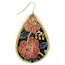 Detailed vintage pink and blue flower stitching against a black fabric background set in a gold teardrop backing makes a rich and luxurious statement.
